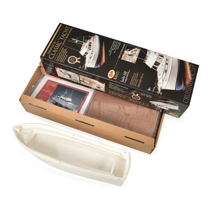 De Amati 1:20 Grand Banks Classic Yacht #ATI-1607 biedt een authentieke replica van de Grand Banks 46 Classic, een iconisch motorjacht dat bekendstaat om zijn robuustheid en tijdloze ontwerp.