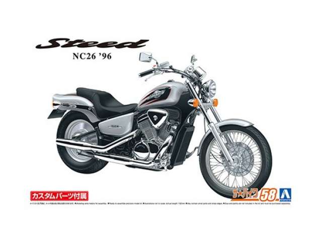 De Aoshima 1:12 Honda NC26 Steed VSE ’96 met custom onderdelen (#AO06268) is een gedetailleerde bouwdoos die een nauwkeurige replica biedt van de Honda Steed VSE uit 1996. Deze set is ideaal voor modelbouwers en motorliefhebbers die een authentiek schaalmodel willen creëren.Producteigenschappen: