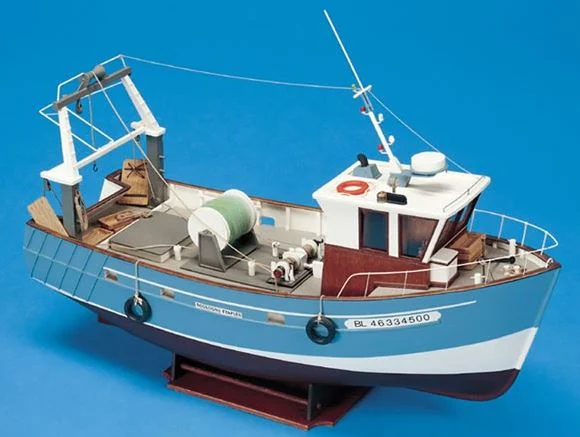 Breng de robuuste charme van de Franse hektrawler Boulogne Etaples tot leven met deze hoogwaardige bouwdoos van Billing Boats.