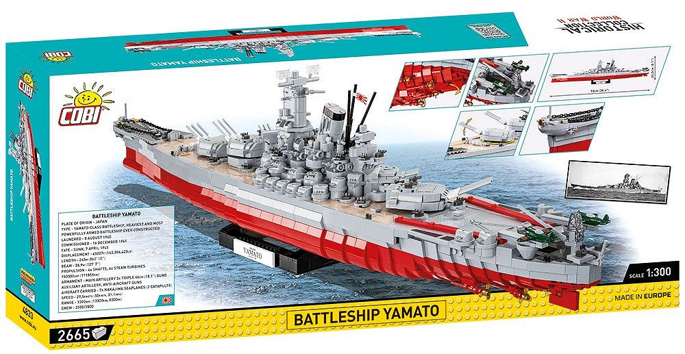 Het Cobi Battleship Yamato bouwsteentjes bouwpakket is een gedetailleerde replica van het legendarische Japanse slagschip Yamato uit de Tweede Wereldoorlog, gebouwd met Cobi’s kwalitatieve bouwstenen. Deze set is bedoeld voor zowel fans van militaire geschiedenis als liefhebbers van bouwsteensets, en biedt een indrukwekkende constructie-ervaring door de nauwkeurigheid en de afwerking die aansluiten bij het iconische slagschip.