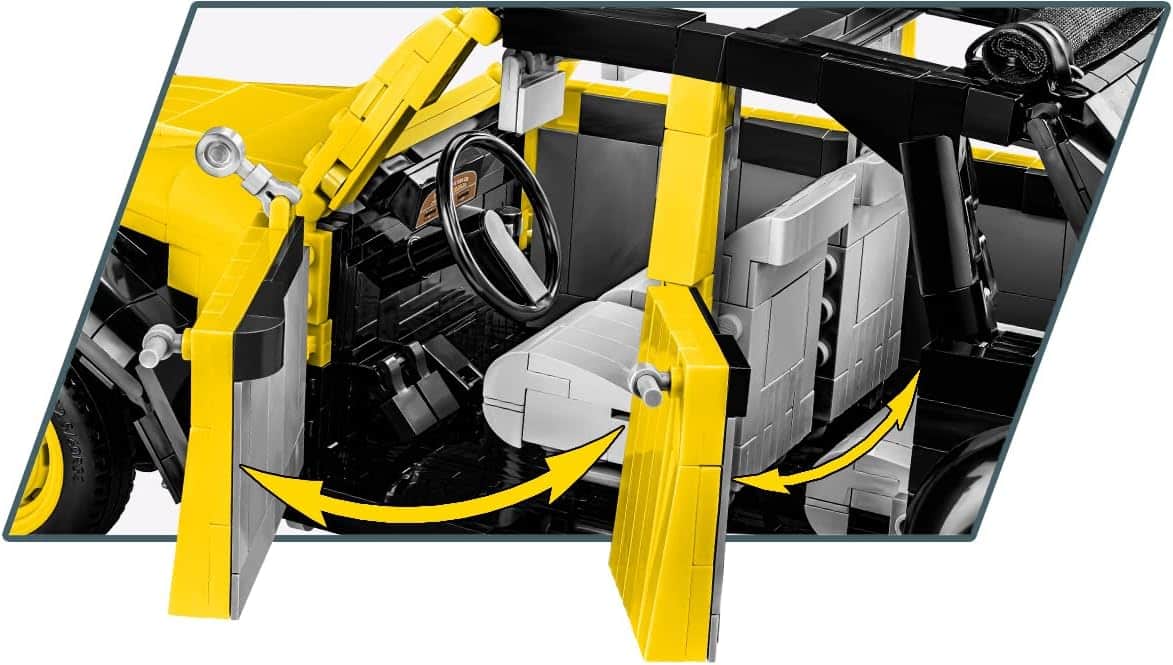 Het model heeft openslaande deuren, een te openen motorkap en kofferbak, een gedetailleerd interieur en een functionerend stuurmechanisme waarmee de wielen meedraaien. Alle details zijn bedrukt, waardoor stickers niet nodig zijn. De bouwstenen zijn compatibel met andere gangbare merken bouwstenen.