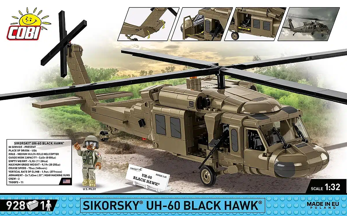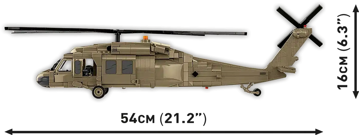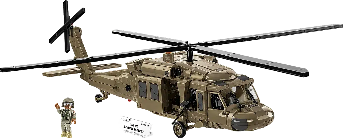 Deze bouwsteentjes-set laat je een gedetailleerd model bouwen van de iconische Sikorsky UH-60 Black Hawk, een van de meest gebruikte militaire helikopters ter wereld. De set maakt deel uit van de Armed Forces-serie van COBI en is voorzien van hoogwaardige bedrukte stenen waardoor stickers niet nodig zijn.