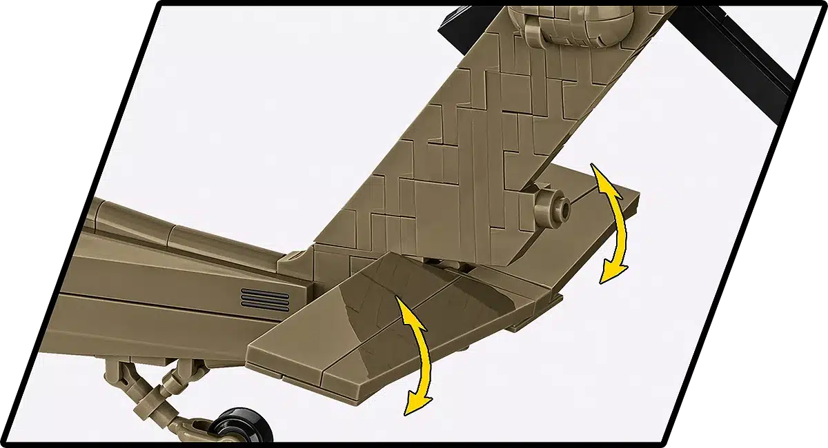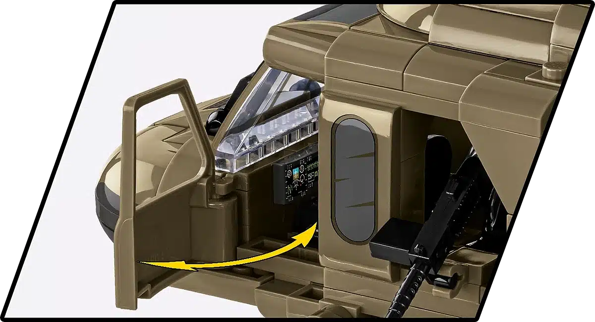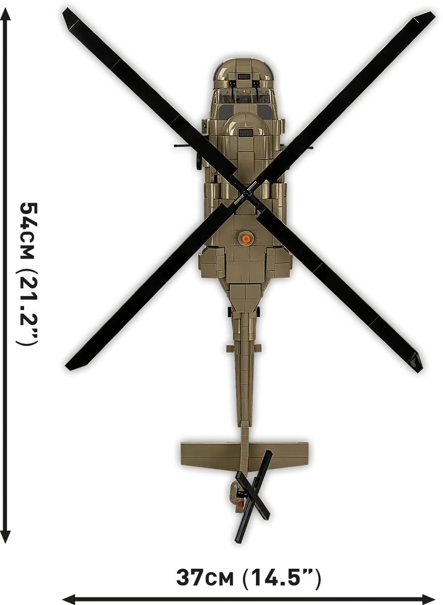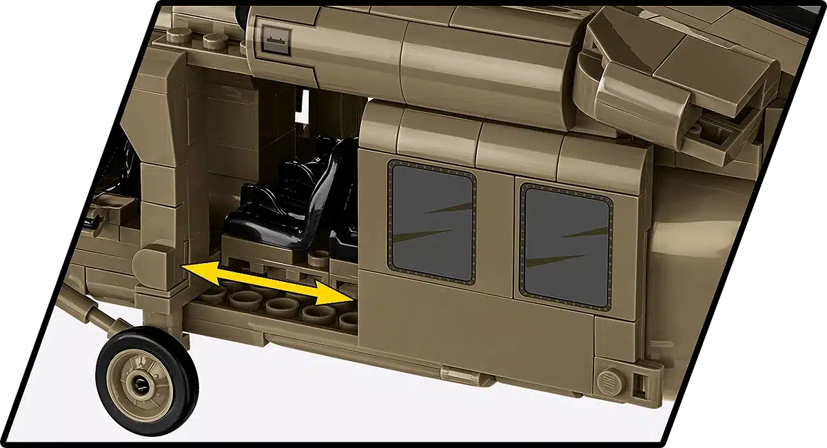 Het model beschikt over draaiende hoofd- en staartrotoren, schuifdeuren aan de zijkant en een gedetailleerde cockpit. Dankzij de realistische vormgeving en schaal is dit model geschikt voor zowel verzamelaars als liefhebbers van militaire luchtvaart. De bouwstenen zijn compatibel met andere gangbare merken bouwstenen.