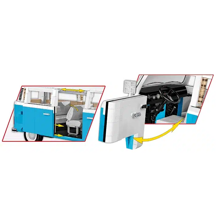 Deze bouwsteentjes-set laat je een gedetailleerd model bouwen van de legendarische Volkswagen T2b Bus, een iconische klassieker uit de jaren ’60 en ’70. De set is officieel gelicenseerd door Volkswagen en biedt een indrukwekkend bouwproject met een hoge onderdelen-aantal en realistische functie-elementen zoals openslaande deuren en een functioneel stuur. De bedrukte stenen zijn van hoogwaardige kwaliteit en stickers worden niet gebruikt.