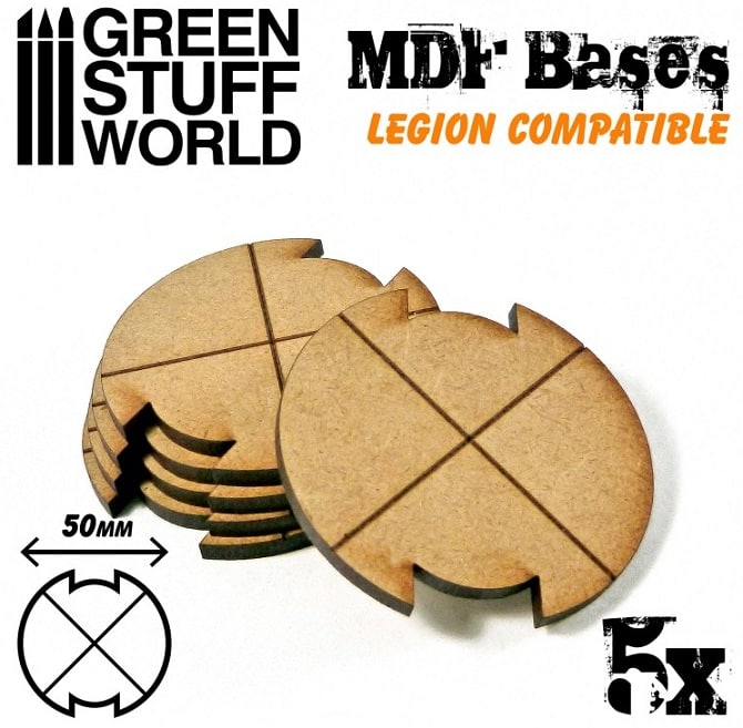 Green stuff world MDF ROUND BASE 50MM LEGION PACK X5