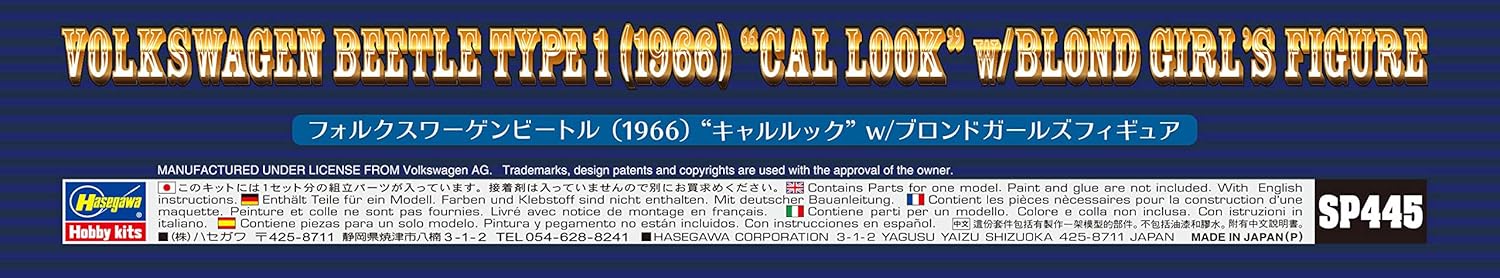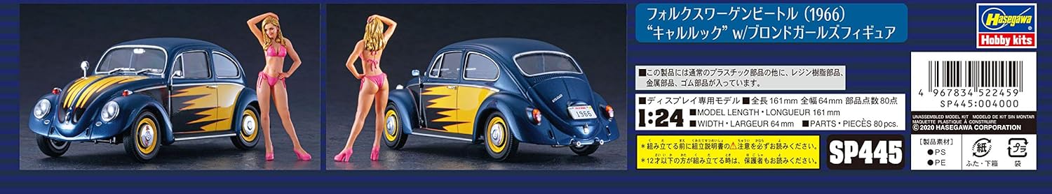 Dit bouwdoos combineert de iconische Cal Look-stijl van de Volkswagen Käfer uit 1966 met een resin blondine-figuur voor een uniek en aantrekkelijk modelbouwerproject.