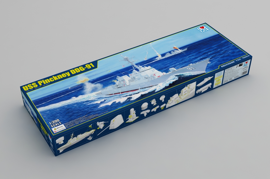 De I Love Kit 1:200 USS Pinckney DDG-91 is een gedetailleerde plastic modelbouwkit van de Amerikaanse torpedojager USS Pinckney (DDG-91) uit de Arleigh Burke-klasse.