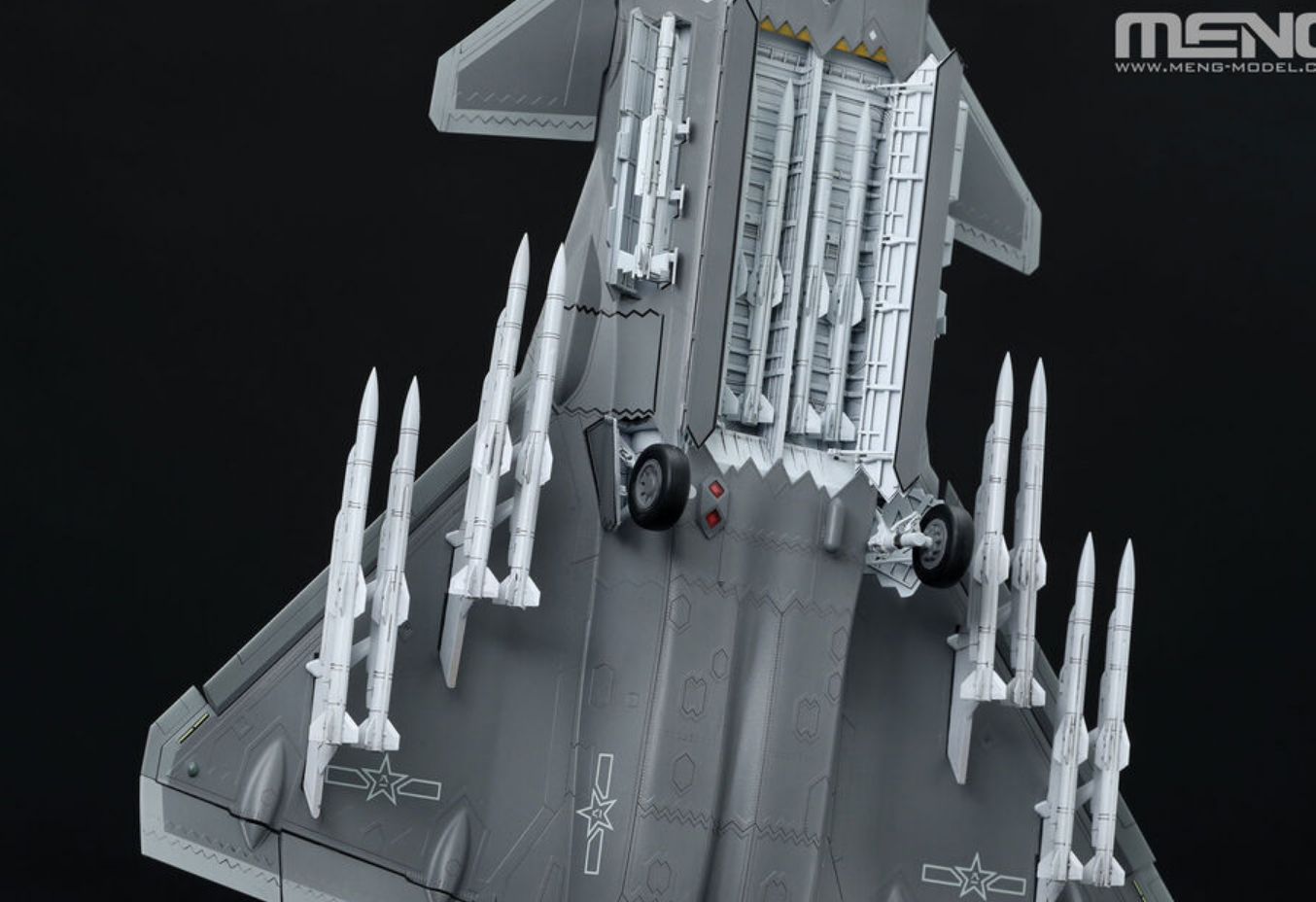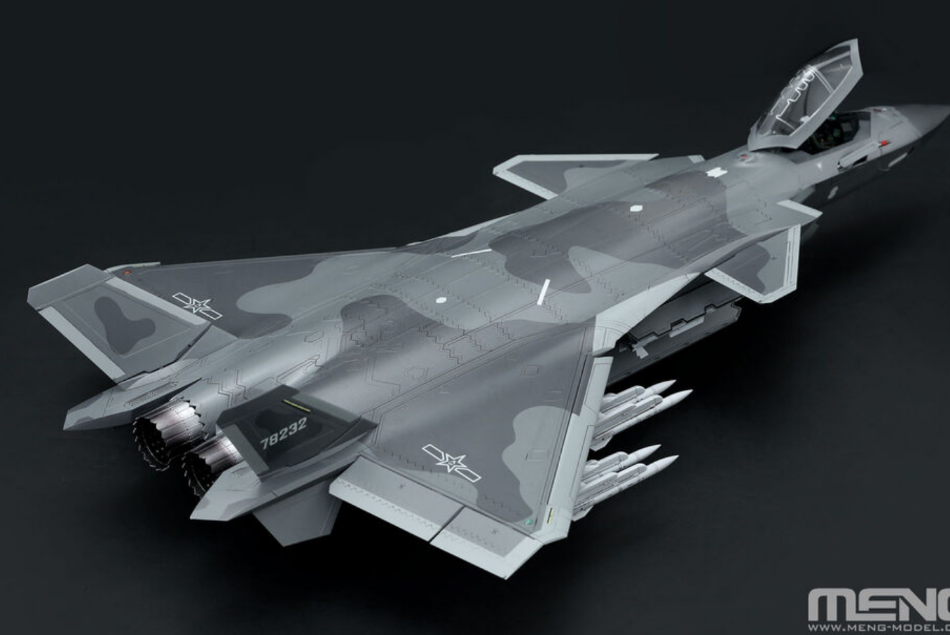 De kit toont de kenmerkende stealth-vormgeving en luchtinlaten van de J-20 in hoge detailkwaliteit.