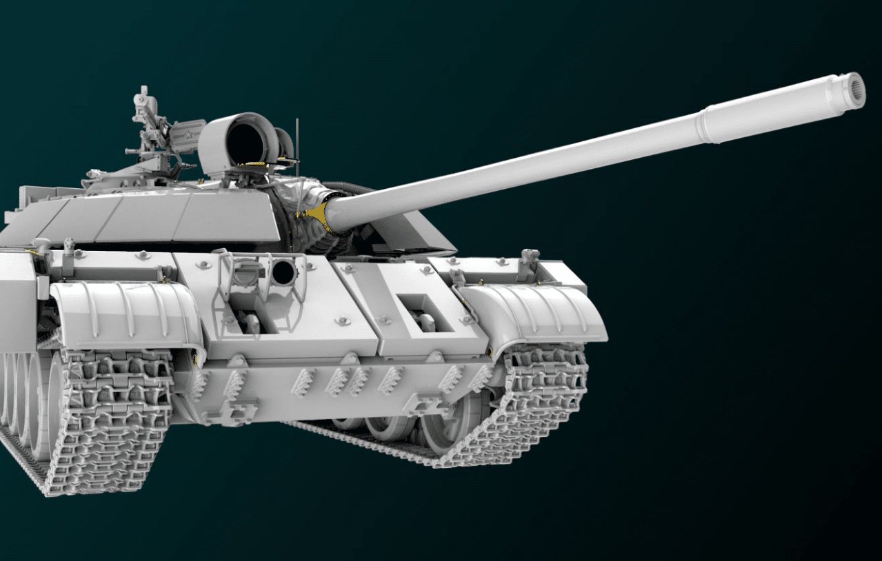 De kit biedt een weergave van de Iraki-T-55 “Al Faw / Enigma” met appliqué-bepantsering, gebaseerd op de in Polen geproduceerde T-55A-bodem.
