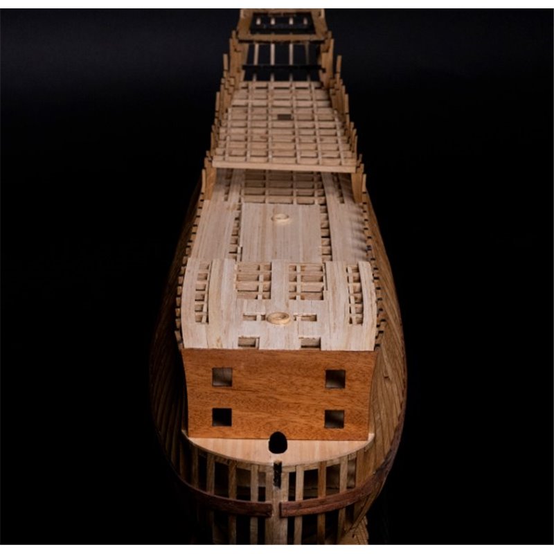 Dit model geeft het historische schip volledig weer, met een zichtbare technische romp en authentieke structuur.