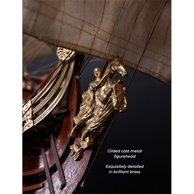 De kit bevat een gegoten metalen, vergulde boegbeeldfiguur, luxe materialen en museumwaardige details.