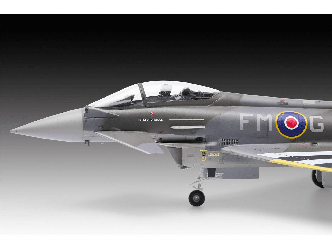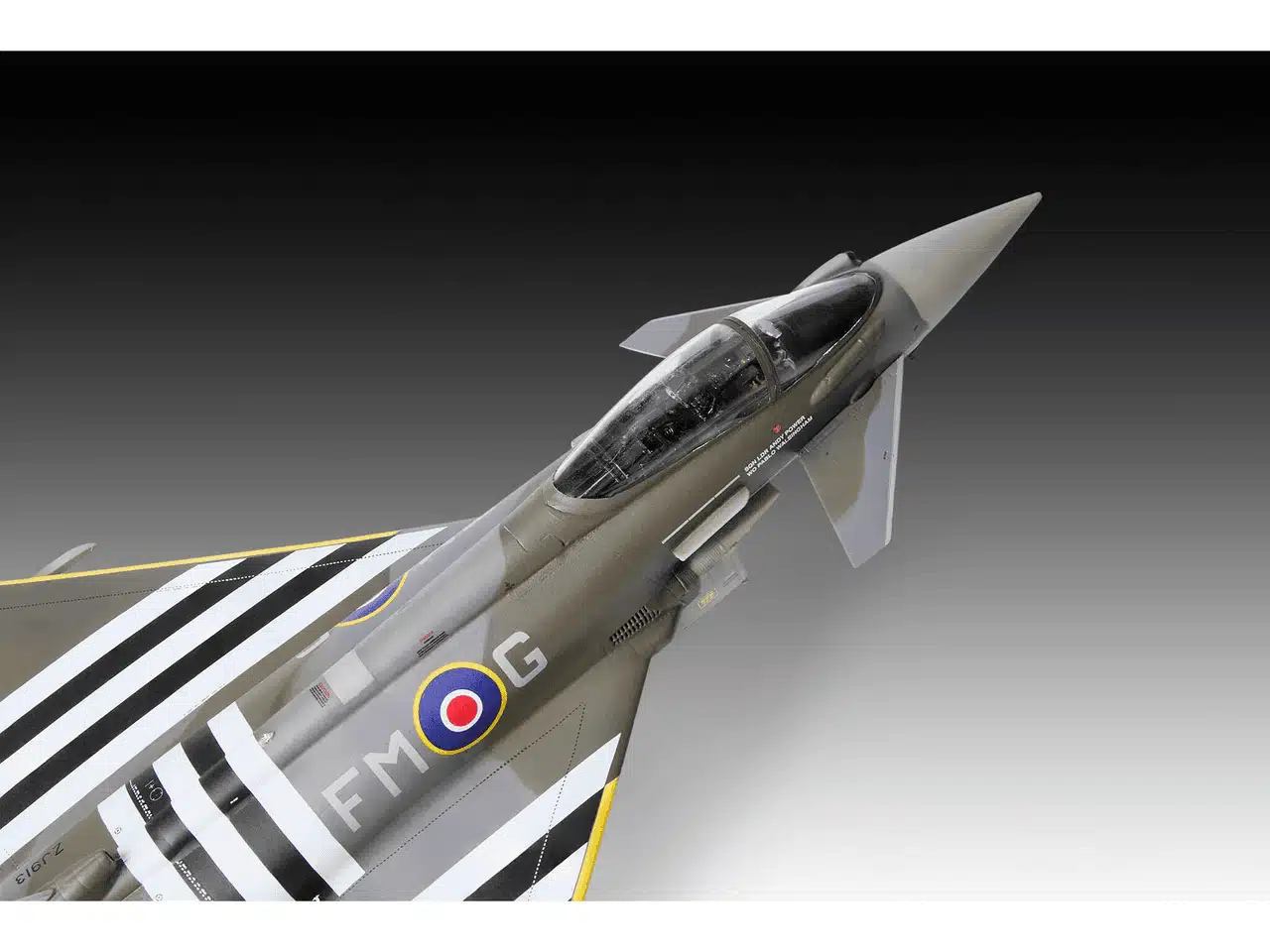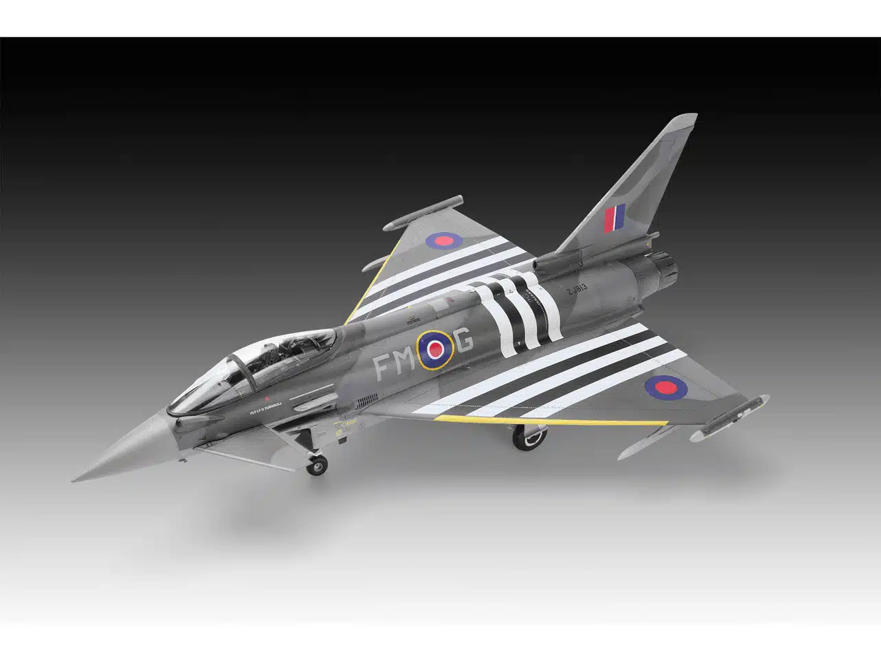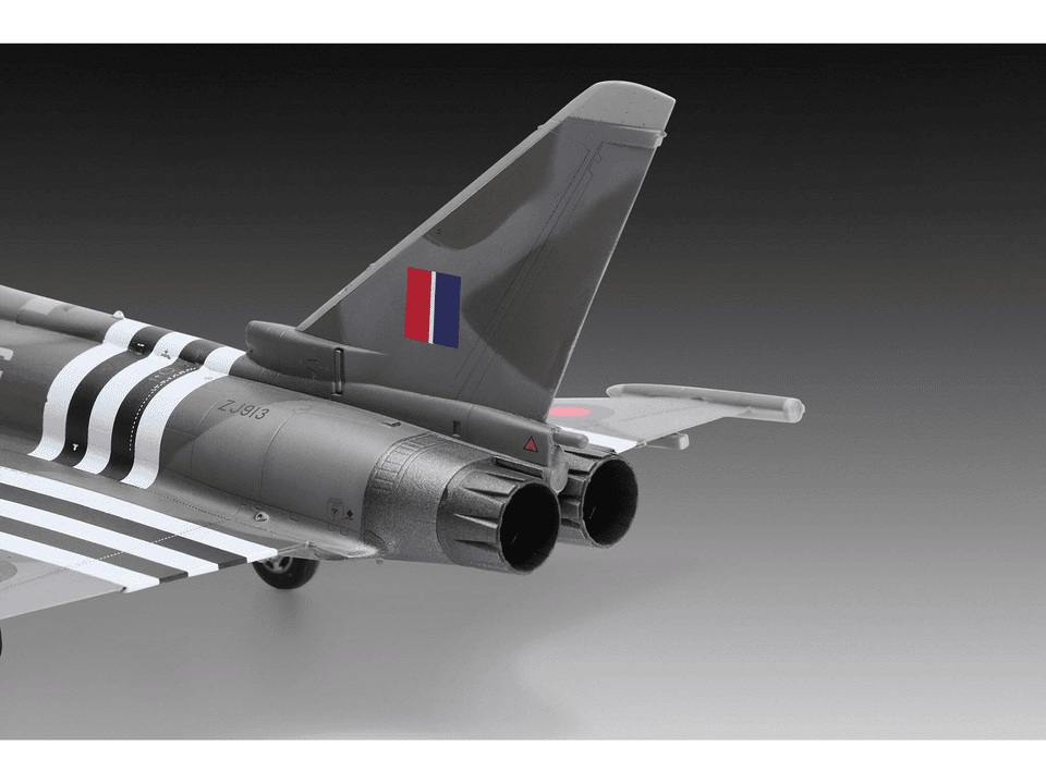De Eurofighter Typhoon FGR.4 is een moderne multi-rol straaljager die wordt ingezet door de Royal Air Force voor uiteenlopende missies, van luchtverdediging tot precisieaanvallen op land- en zeedoelen. Deze versie herdenkt de inzet en samenwerking van geallieerde luchtmachten rond D-Day met een speciale kleurstelling. De bouwdoos laat de dynamische lijnen van het toestel zien en biedt verschillende bouwopties voor configuratie en detail.