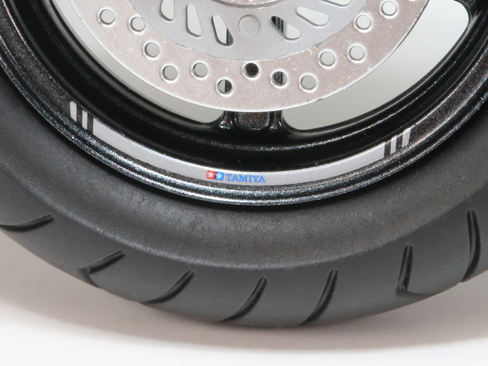 De luchtgekoelde motor, de uitlaat en het zadel zijn natuurgetrouw weergegeven.
