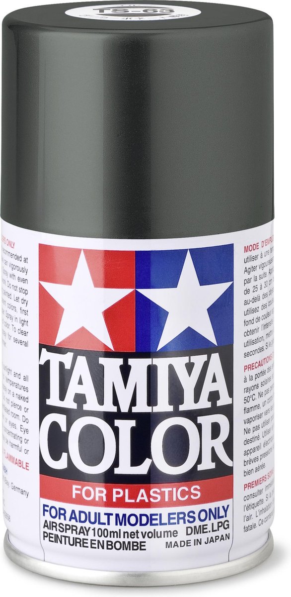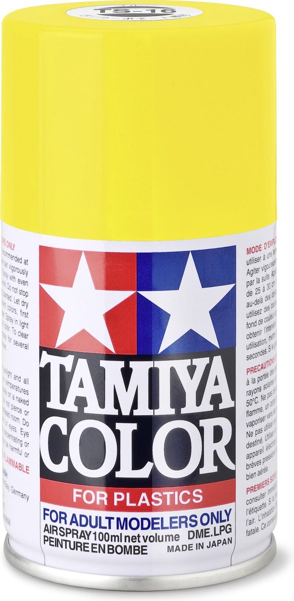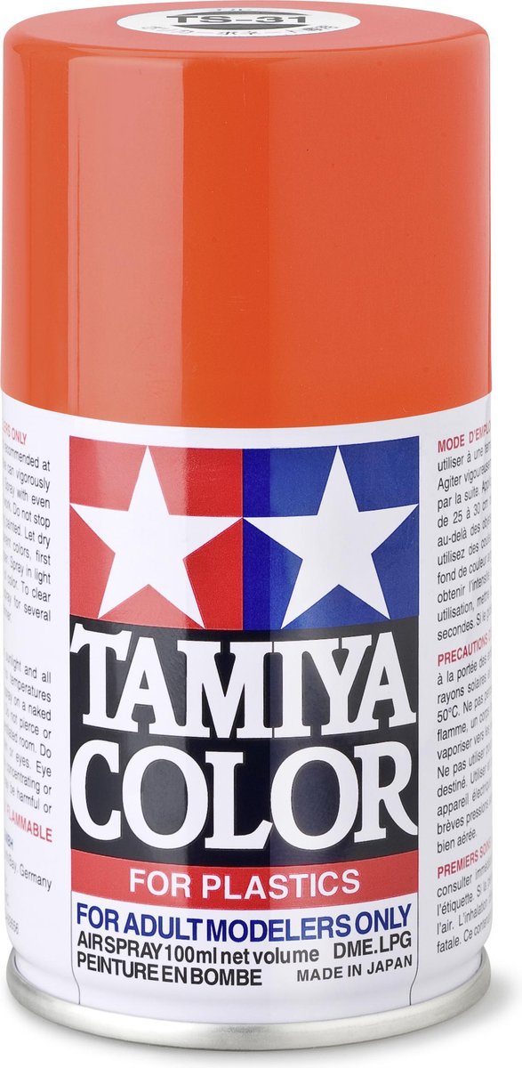 De TS staat voor Tamiya Spray.Deze Tamiya verf spuitbussen zijn zeer handig voor het spuiten van grotere oppervlakken. De verf is synthetisch die in een korte tijd uithardt. Tamiya spuitverf wordt niet beïnvloed door acryl- of enamel/emaille verf.De Tamiya spuitbus is te gebruiken voor kunststof (plastic), hout, metaal, glas en keramiek.Ook grondverf- en vernis spuitbussen van Tamiya zijn verkrijgbaar bij Model-kitsGoed schudden voor gebruik en lees altijd voor gebruik de gebruiksaanwijzing en waarschuwingen op de spuitbus.Inhoud: 100ML