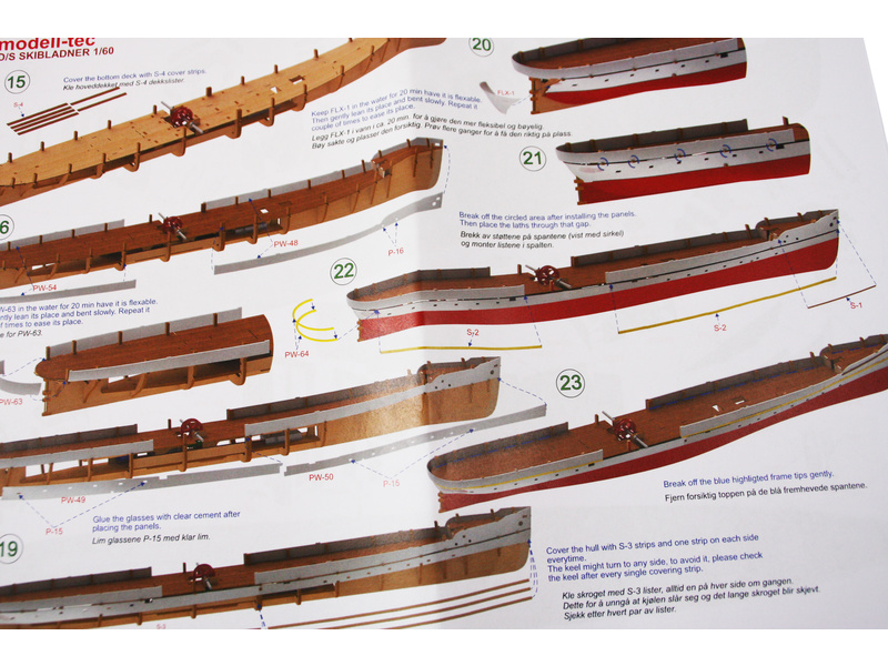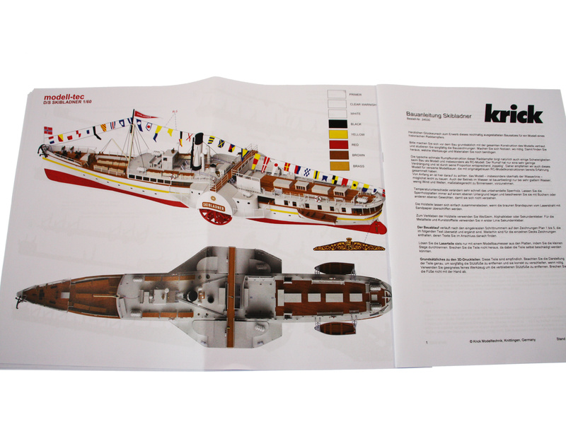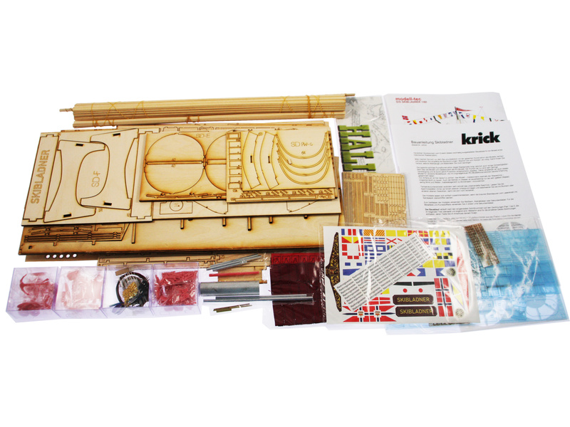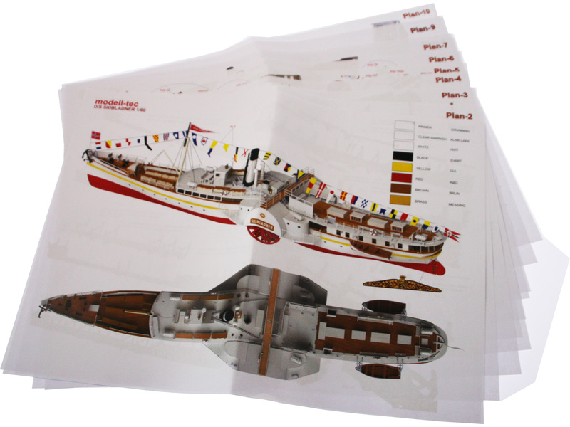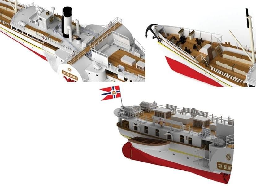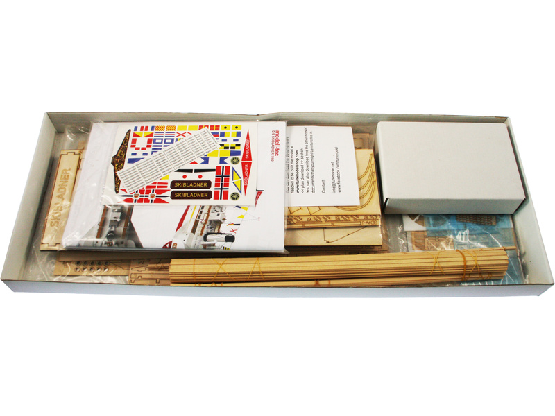 De onderdelen in de kit zijn laser gesneden, fittingen, vlaggen, enkele wimpels en LED-verlichting inbegrepen. Het model van DS Skibladner is opgebouwd volgens de originele tekeningen van Oplandske Dampskipselskap.